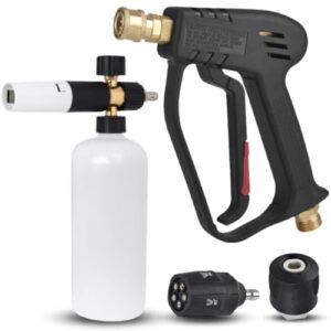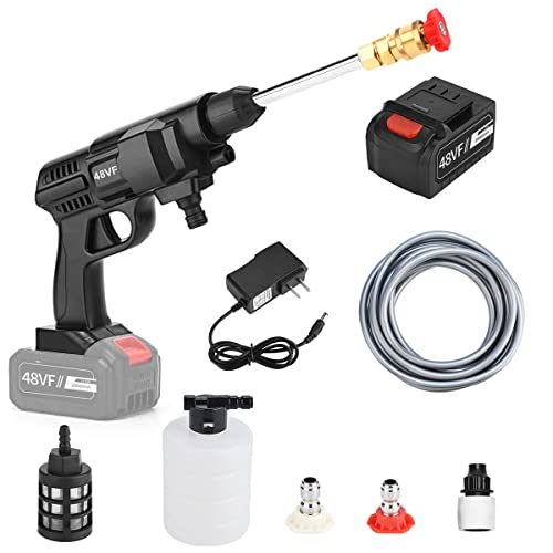 高圧洗浄機は、コードレスで小型の家庭用モデルです。充電式でポータブルなガンタイプを採用し、洗車や屋外の洗浄に便利。タイヤや外壁、ベランダ、庭の水撒きにも使用できます。