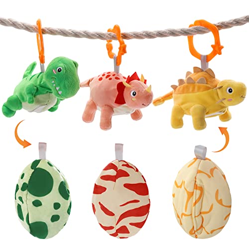 【Tumama】卵に変形する恐竜ラトル3種類セット。0〜3歳向けの早期発達を促すおもちゃ。ベビーカーや車に取り付け可能。出産祝い、誕生日ギフトにも最適。