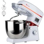KALELAISU スタンドミキサーは8Lの大容量ボウルを持ち、ダブル攪拌フックで同時に作動。99分タイマー、7段階変速、4種類のアタッチメントで混ぜる・練る・泡立てる多機能設計です。家庭用・業務用の卓上型です。