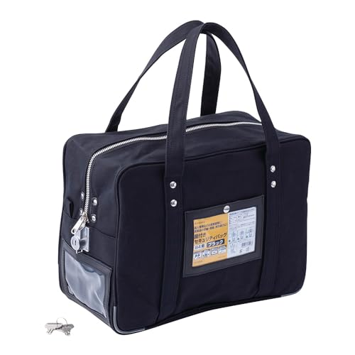 ヒサゴの鍵付きセキュリティバッグ(B4用)は、ブラックのデザインで、重要書類や貴重品を安全に保管できます。堅牢な構造と使いやすい施錠機能が特徴です。
