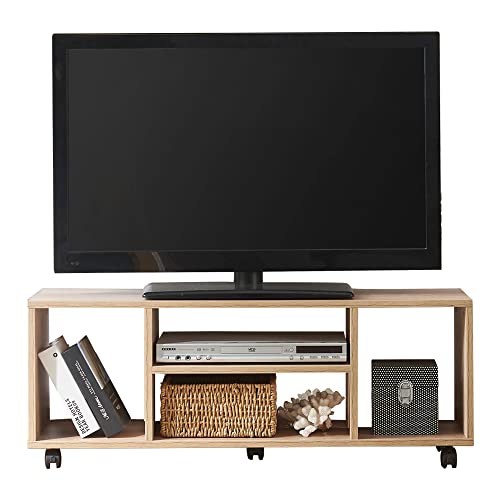 Vanlent テレビ台はキャスター付きで移動が簡単。サイズは幅1000mm、奥行296mm、高さ380mm。24型から46型まで対応可能で、ナチュラルなデザインが魅力。