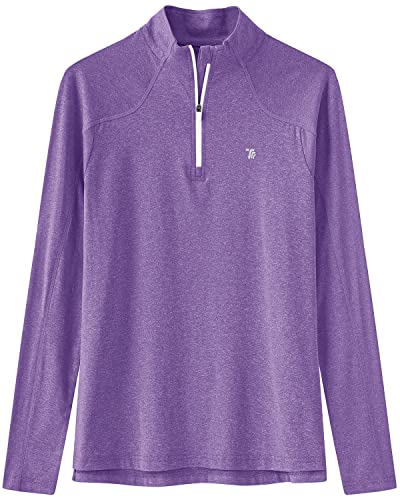 YSENTOのロングTシャツは、フィットネスに最適なハーフジップアップデザイン。長袖で、スポーツやトレッキングに適した速乾性素材を使用。パープル色で、Lサイズ。
