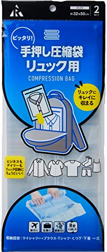 アールのF-3001手押し圧縮袋はリュック用で、圧縮によりスペースを節約。持ち運びに便利で、旅行やアウトドアに最適。簡単操作で衣類をコンパクトに収納可能です。