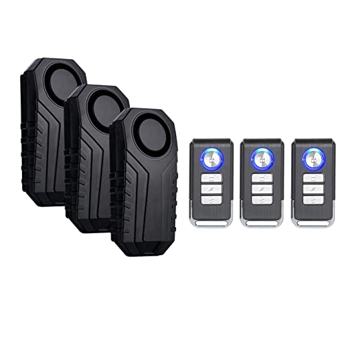 Mengshen 3パック無線自転車盗難防止アラーム113dB。リモコン付き、IP55防水設計でバイクやスクーターに最適。