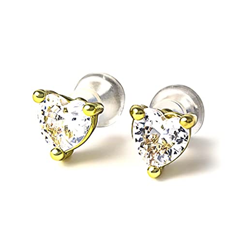 PLUSTERのハート型スタッドピアスは、5mmのサイズで金属アレルギー対応。イエローゴールドとジルコニアを使用し、専用ポーチ付きで誕生日プレゼントにも最適です。