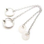 ワイヤレスイヤホン用の落下防止、紛失防止アクセサリーです。両耳用のイヤリング形式で、AirPodsに対応。シルバーのデザインで、ペア売りされています。