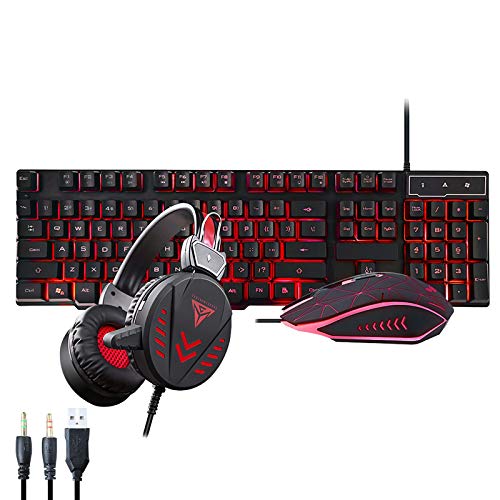 Niaviben ゲーミングキーボード マウス ヘッドセット コンボキット LED レインボー バックライト 104キーキーボード ゲーミングマウス 有線 オーバーイヤーヘッドホン パソコン/コンピュータ/タブレット/携帯電話用