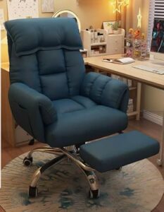 【完全サポートチェア】5段階リクライニング 昇降式 1人掛けソファチェア 360度回転 背もたれ・肘付き・足置き機能 長時間のデスクワークと仮眠に (青, ペダル付き)