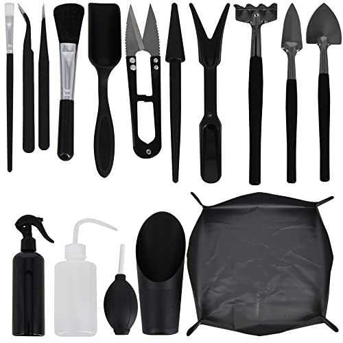 ガーデニングツールのミニサイズ16点セット。多肉植物や盆栽のお手入れに最適。スコップや霧吹きなど、園芸用品が揃っており、鉢植え作業をスムーズにサポートします。