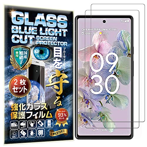 RAISEのGoogle Pixel 6A用ガラスフィルムは、ブルーライトカット93%、透過率99%、硬度9Hで高光沢。自動吸着で気泡ゼロ、指紋防止、撥水撥油機能付き。2.5Dラウンドエッジデザインで安全性も考慮。
