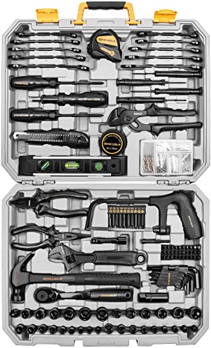 DEKO 218点組の工具セットは、家庭用のDIYや日曜大工に最適な作業工具が揃っています。便利な収納ケース付きで、家具の組み立てや住まいのメンテナンスに役立つ修理道具が充実しています。