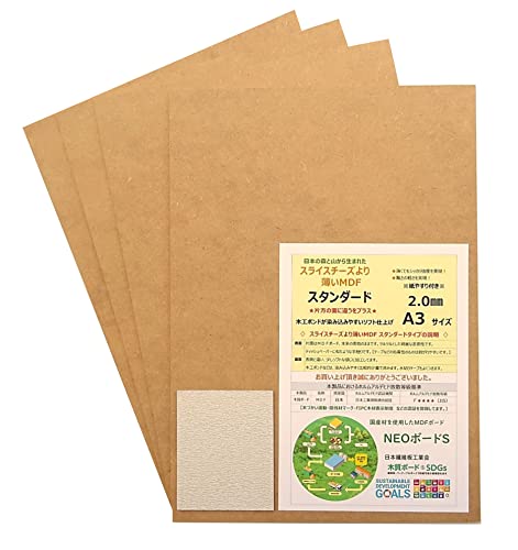 Cafe Wood 薄いMDFボード A3サイズ、厚さ2㎜の薄板で、加工が容易です。5枚セットで、紙やすりが付属しており、DIYやクラフトに最適な素材です。