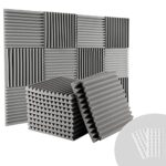 吸音材 30×30cm 厚さ2.5cm 12枚セット。ポリウレタン製のウェッジ型で、騒音消音・防音対策に効果的。室内装飾にも最適。両面テープ付きで簡単に取り付け可能。