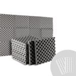 吸音材(30×30cm、厚さ2.5cm)12枚セット。ポリウレタン製で、騒音の消音・防音に最適。楽器の演奏や室内装飾にも使用可能。両面テープ付きで簡単設置。カラーは灰色の三角形デザイン。