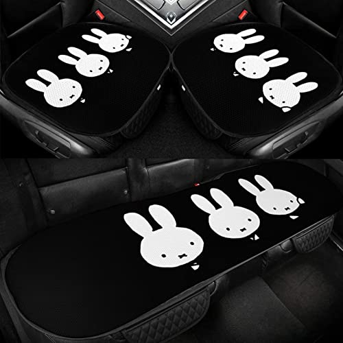 ミッフィーのカーシートカバー3枚セット。前座席用2枚と後部座席用1枚。冷感素材アイスシルクで通気性に優れ、低反発クッションで快適。滑り止め付きで安心して利用可能。