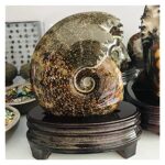 天然アンモナイト化石標本、700-800g。マダガスカル産の翡翠オーシャンコングで、ホーム装飾に最適です。木のスタンド付きで、ユニークなインテリアを演出します。