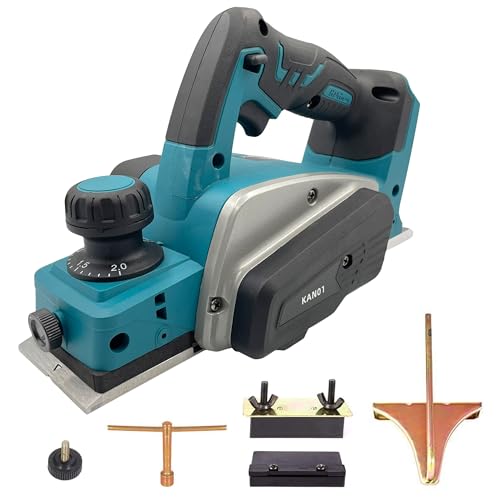 マキタ互換の充電式電気カンナ(KAN01-BL)。18V/14.4V専用で、小型コードレス設計。木工作業に最適な電動工具で、手軽に持ち運び可能。