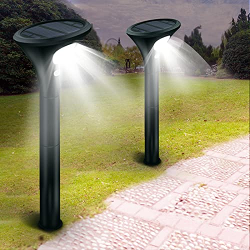 ソーラーアウトドアライト2個パック。明るいLED(100LM)を搭載し、防水仕様。モーション検出機能付きで、芝生や通路、庭、私道、歩道に最適です。色はクールホワイト。