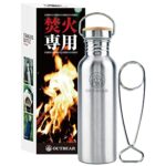 OUTBEARの直火で使えるステンレスボトル750mlは、焚火や湯たんぽとして使用可能。食品衛生法許可取得済で安心。付属のボトルハンガーで手軽に持ち運び、アウトドアに最適です。