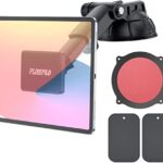 タブレットホルダーは車載用のマグネットタイプで、伸縮アームと粘着ゲル吸盤を使用。ダッシュボードやフロントガラスに対応し、スマホやiPadも安定して保持します。