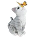 ソーラーライトを搭載した猫と蝶々のデザインのガーデンオーナメント。省エネで屋外・室内両用。樹脂製の雑貨として装飾にも最適。恋愛運アップにも◎。彼女へのギフトやバレンタインデーにおすすめ!