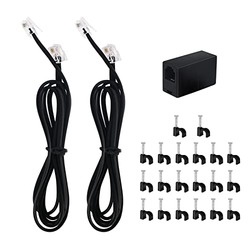 3フィートRJ11 6P4C電話ケーブル2本、1インチのインラインカプラー、20個の7mmケーブルクランプ。固定電話やファックス用に便利。