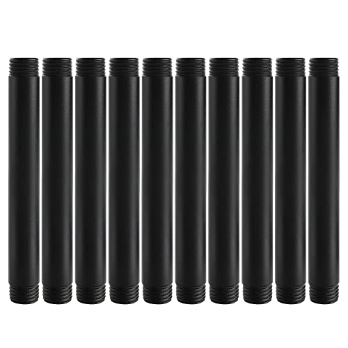 1/2インチ x 6インチのブラック工業用パイプ10パック。可鍛性鋳鉄製で高耐久、プレカット済み。DIYプロジェクトに最適なインダストリアルヴィンテージスタイル。