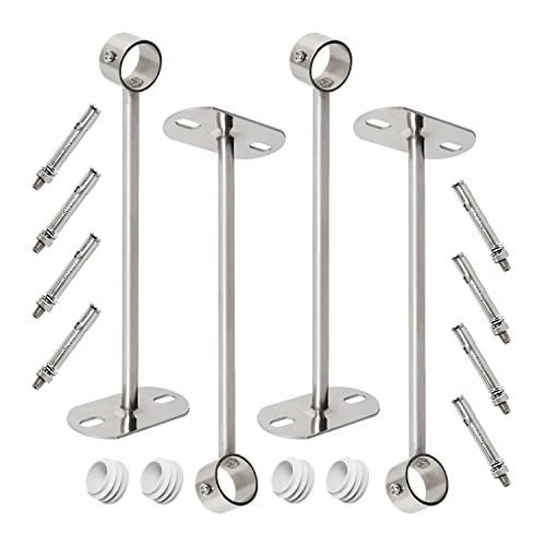 Ohamtes 4Pcs パイプ穴径25mm、長さ300mmの洋服レール取り付けブラケット。壁や天井に取り付け可能で、シャワーカーテンやクローゼットにも使用できます。