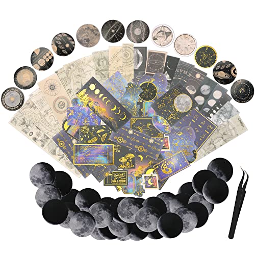 191枚 天文学 宇宙系 シール ヴィンテージ アンティーク調 ステッカー フレークシール 箔押し 金箔 ステッカー レトロシリーズ コラージュシール スクラップブッキング 転写シール ピンセット付き シール帳 手帳 図書カード スマホケース デコレーション用の高価買取