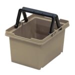 JEJアステージの収納ボックス、セパレートバスケット#25サンドベージュ。日本製でアウトドアやキャンプに最適。サイズは幅17.8×奥行23.5×高さ14cm、積み重ね可能なデザイン。