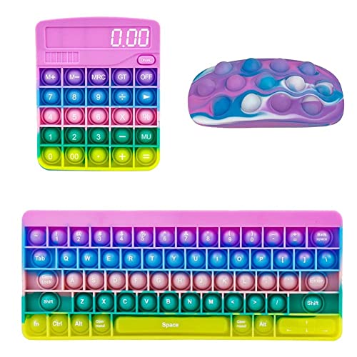 スクイーズ玩具3点セット(キーボード、マウス、電卓)は、ストレス解消や知育に最適。洗えるので清潔に保て、子供から大人まで楽しめます。
