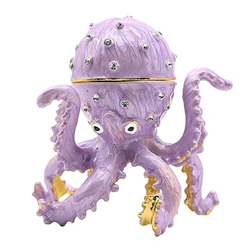 Owlcatcok パープル オクトパス トリンケットボックス 装飾 ハンドペイント オクトパス ヒンジ付き ジュエリー トリンケットボックス ユニークなギフト ホームデコレーション ユニークなリング イヤリング ジュエリー オーガナイザーの高価買取