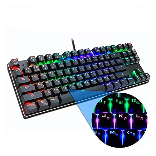 ゲーミングメカニカルキーボード、87キー、ブルーレッドスイッチ、RGBバックライト、USB接続、ブラックボディ。アンチゴースト機能搭載。