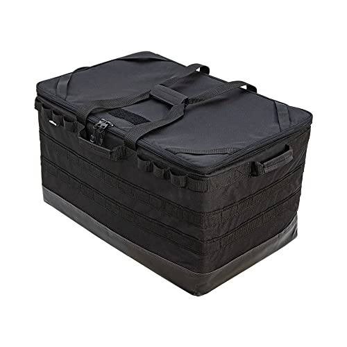 WHATNOTの折り畳みギアコンテナGC-01-BKは、幅620mm、奥行400mm、高さ380mmのツールバッグです。ブラックカラーで、持ち運びや収納に便利なデザインです。