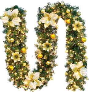豪華版 クリスマス 飾り ガーランド クリスマスリース モール LEDライト付き 電池式 クリスマスツリー 飾り クリスマスガーランド モール クリスマスリース クリスマスツリー 装飾 クリスマス用品 ガーデン装飾籐 グリーン クリスマス用品 喫茶店 飲食店 柵 階段の手 ドア 窓 デコレーション 正月飾り(2.7Mのよく装飾された籐)
