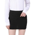 タイトスカート、ミニ丈、ストレッチ素材の無地デザイン。ウエストゴムで履き心地抜群。美脚効果があり、ひざ上のスタイル。XLサイズ、カラーはブラック。