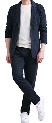 KOKUBOのリモートワークに最適なスーツセット。ポンチジャージ素材を使用し、伸縮性と快適性を兼ね備えたネイビーのテーラードスタイル。春夏秋冬対応で、カジュアルビジネスにも最適。サイズはジャケット・パンツともに3L。