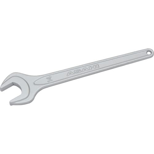 ASH 丸形片口スパナ強力タイプJISH(クロムメッキ)14mmは、耐久性に優れたクロムメッキ仕上げで、滑りにくいデザインです。狭いスペースでも使用可能で、ボルト・ナットの締結作業に最適です。