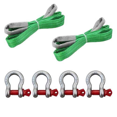 HELIXスリングベルト2m(幅50mm)の2トン対応のナイロンスリングです。使用荷重2000kg、牽引や吊上げ作業に適しています。鍛造シャックル4個付き、日本語説明書が付属しています。