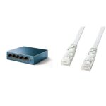 TP-Linkの5ポートスイッチングハブ(LS105G)はギガビット対応で設定不要。金属筐体で耐久性あり。サンワサプライのLANケーブル(LA-FL6-10W)はフラットタイプのCAT6、10mで1Gbps対応。