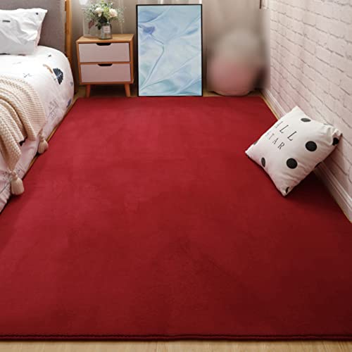 ラグマット(200x180cm)は、冷房・ホットカーペット対応のワインレッドカラー。防音効果があり、マイクロファイバーフランネル製。折り畳み可能で、お手入れ簡単。冬用・無地デザインで1年中使用可。