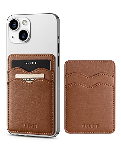 VULKIT携帯電話カードホルダーは、スリムなレザー製で、粘着ポケットとRFIDブロック機能を備えています。クレジットカードスリーブとしてスマートフォンの背面に取り付け可能。100ブラウン、Mサイズ。