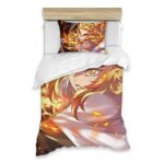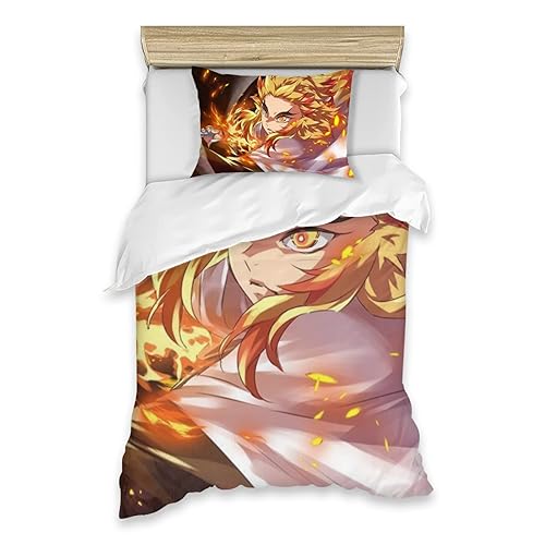 煉獄杏寿郎デザインの布団カバー2点セットです。掛け布団カバーとボックスシーツ、シングルサイズ(137×203cm)、枕カバーが含まれています。寝具をスタイリッシュに彩ります。