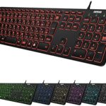 Arteck USB有線キーボードは、7色バックライト、明るさ調整、フルサイズ、6フィートコート。PCやWindows 11/10/8/7対応。