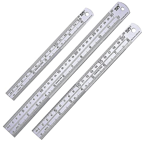 MOLATEのステンレス直尺3種セットは、30CM、20CM、15CMの長さで、両側にセンチメートルとインチ表示があります。精密測定が可能な測定工具です。