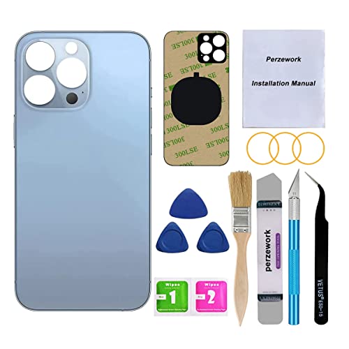 Perzework OEM リアバックガラス 交換用 (シエラブルー) iPhone 13 pro 6.1インチ対応 接着剤と修復ツールキットが取り付けられているすべてのキャリアーの高価買取
