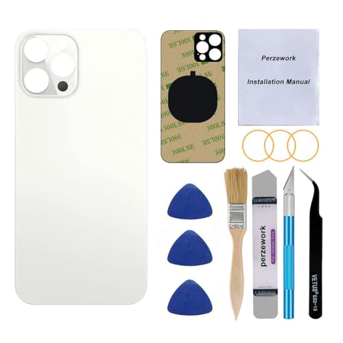 Perzework OEM 背面ガラス交換用 (シルバー) は、iPhone 12 Pro Max 6.7インチに対応。接着剤と修復ツールキット付きで、全キャリアーの製品情報をカバー。