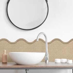 壁紙屋本舗 水はね防止 シート はがせる 壁紙シール 汚れ防止 防水 賃貸 洗面 キッチン トイレ ラタンウェーブ MBS-NA03 25cm×1.3m【受注生産品キャンセル不可】