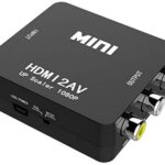 HDMIからアナログに変換するアダプタ。1080P対応、PAL/NTSC切り替え可能。音声出力付きで、USB給電ケーブルが付属。