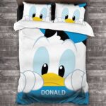 ドナルドダックの布団カバー3点セット。シングルサイズ、掛け布団カバー・ボックスシーツ・枕カバー入り。洗い替え可能で速乾タイプ、防ダニ機能付き。洋式・和式兼用の寝具カバーセットです。